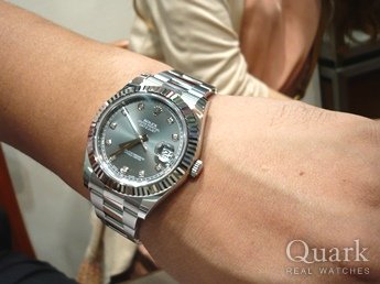 デイトジャストⅡが出てからずっと狙っていました!HP・雑誌を見てこのモデルを購入するとほぼ決めていたんですが、陳列されているコンビモデルも気になってしまい、一時決断が揺らぎました(笑)しかし、実物を見に行って正解でした、安心してこのモデルをずっと使いたいと最後には決意出来ました。