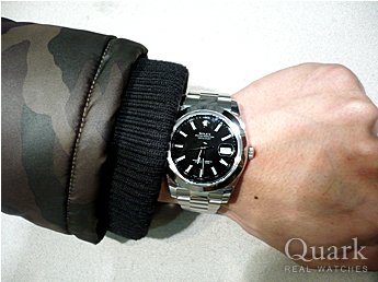 エクスプローラーⅠと悩みましたが、大きさとシンプルなデザインが気に入りデイトジャストⅡの黒にしました。