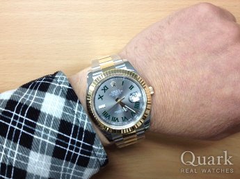 イエローゴールドコンビのデイトジャストII。大変お似合いでございますね!