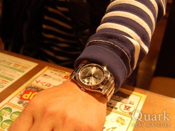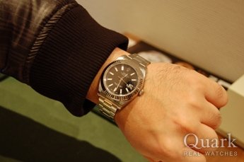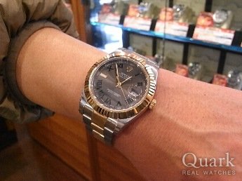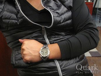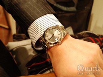 正規店に行って、数種類あるDATE JUST IIの文字盤から「ブルー」「シルバー」「グレー」の3色に絞り込み、最終的には人と被り難い、珍しい色目のグレー文字盤に決めました。また、ダイヤとの相性もシルバー色より