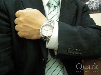 色々なROLEXのモデルで迷ったが、「ロレックス3大発明」が組み込まれた、DATEJUST IIにしました。フォーマルでもカジュアルでも合わせ易いデザインと、クォークさんのセール(お得感)が決め手となりました!!