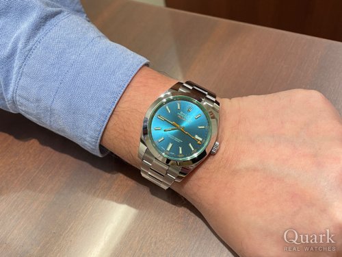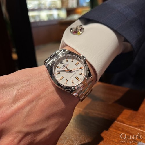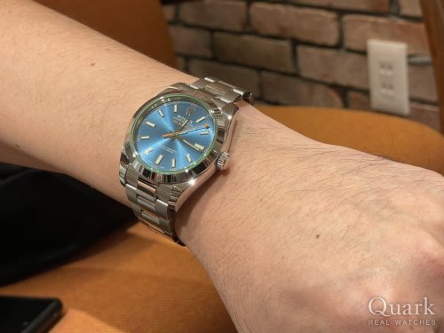 初めてMILGAUSSのZブルーが登場した時から気になっていました。値段も落ち着いてきた今が購入のチャンスと思い購入。当初はクォークさんで以外のお店で未使用のRef.116400GV ブラックダイヤルを検討しましたが、よくよく考えて本当に欲しいのは?資産性価値が高いのは?など検討の末、クォークさんのMILGAUSS Zブルーダイヤルを選びました。今回購入したMILGAUSSは2024年4月にオーバーホールをしており、ここ数年はオーバーホールの事を気にしないで安心して使えます。また、今回購入したMILGAUSSは中古の商品でしたが、中古とは思えない状態の良さも購入の決め手です。