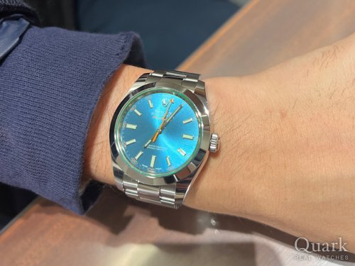 初ROLEX購入おめでとうございます!ミルガウス独特の個性的なZブルー文字盤に加え、鮮やかなオレンジ色の稲妻針がかっこいいですね!帯磁性に強いCal.3131も搭載しており、どの様な環境下にも対応出来る素晴らしいお時計かと存じます。ブレスレットの洗浄及び調整も無料で行っておりますので、お近くにお越しの際は遊びにいらしてくださいませ。お使いいただく上で何かご不明な点等ございましたら、また林までご相談ください。今後とも末永いお付き合いの程よろしくお願いいたします。