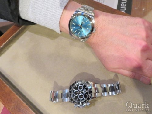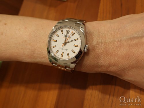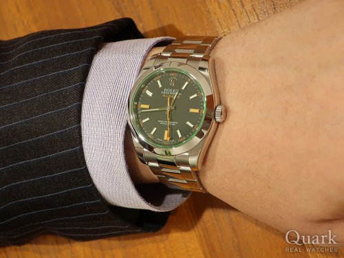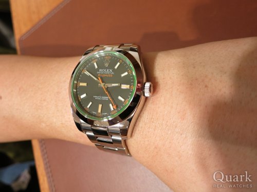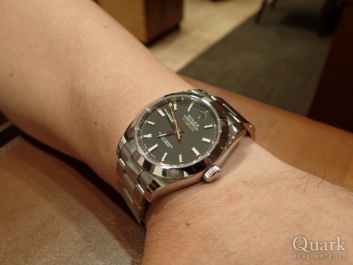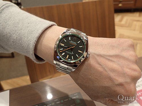 I様、この度はクォーク梅田店をご利用頂きまして誠に有難うございました。お忙しい中、ご遠方より何度も足をお運び下さり心より感謝を申し上げます。今回ご購入頂きましたモデル Ref.116400(黒)は、2015年頃まで生産されたミルガウスです。グリーンガラスの現行モデルよりもシンプルで実用性の高さも魅力です。オレンジの稲妻針がとってもお洒落ですよね。最近では市場にも在庫が少なく希少性もより出てきております。タイミング良くI様にご案内ができとても嬉しく思います。とてもお似合いでしたので、末永くご愛用頂けましたら幸いです。今後もご指名頂けますようしっかりとサポートををさせて頂きますので、何かご要望などございましたら私井内までお気軽にお申し付け下さいませ。また、ブレスレットの洗浄及び調整も無料で行っておりますので、お近くに来られた際には是非共お立ち寄り下さいませ。心よりお待ちしております。