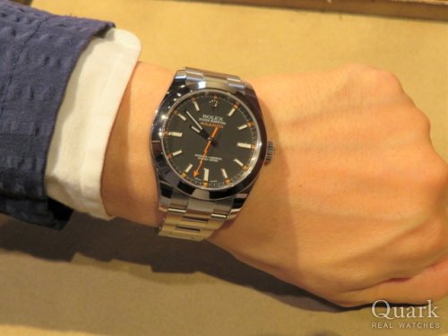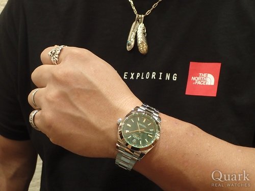 S様 この度はクォーク新宿店をご利用頂き、誠にありがとう御座います。今回ご購入頂いたお時計はロレックスの中で唯一のイナズマ針とグリーンサファイヤガラスの組み合わせが採用されたモデルでございます。個性と遊び心がある一本となります。また、お時計の性能については耐磁性が強いので、家電製品に囲まれた現代社会にも安心してご使用頂けます。Ref.116400GVのデザイン性も実用性もS様にご満足いただけると思います。お使い頂く上で何かご不明な点等ございましたらいつでも何(か)までお申し付けください。 今後とも末永くお付き合いの程、宜しくお願い致します。