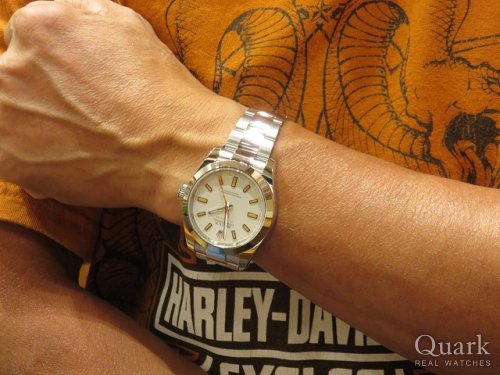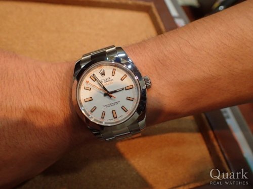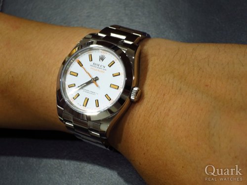 白文字盤のオレンジインデックスが可愛らしく、一目で決めました。店長をはじめクォーク皆さんの親切さもあり、気持ちよくミルガウスを買えました!また別のモデル買いに来ます!