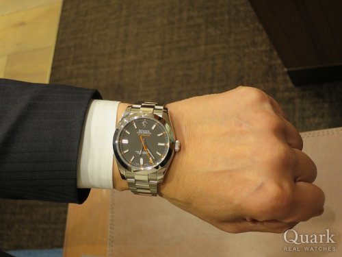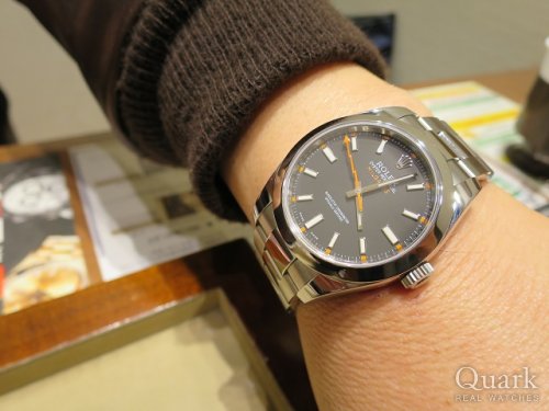 この度は、クォーク横浜店にご来店ならびにご購入いただきまして誠にありがとうございました。生産が終了してしまった116400ブラック、最近では流通も減ってきており、中古商品と言えども、店頭に在庫が無い時も多いのですが、タイミング良くご紹介出来て嬉しく思います。ミルガウスのボリューム感はN様に大変似合っておりました。シンプルなデザインですがイナズマ針がアクセントになっていて、他のモデルとは一味も二味も雰囲気が違う所が、私も好きです。末長く安心してご愛用いただけますよう、しっかりサポートさせていただきますので、今後ともよろしくお願い致します。またこちらにお越しの際には、お気軽にお立ち寄りくださいませ。お待ちしております。 クォーク横浜店 御子神・長本