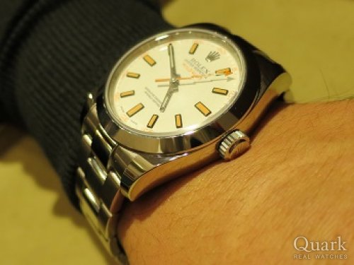 S様 この度はクォーク仙台店をご利用くださいまして誠にありがとうございます。鮮やかな白いダイヤルが綺麗なミルガウスは、デザインだけではなく耐磁機能を備えた実用性の高いモデルでございます。また、S様が色々な時計を眺めながらも、ミルガウスに惹かれてご購入を決意した流れには、とても驚きました! 腕元におさまった時には、すでにS様に馴染んでいらっしゃったのを鮮明に覚えております。今後はしっかりと対応致しますので、どうぞご安心くださいませ。ご紹介くださいましたT様、いつもありがとうございます。是非また皆様で遊びにいらしてください。心よりお待ち致しております。 クォーク仙台店 古賀