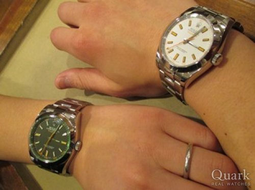 S様 この度はクォーク仙台店をご利用くださいまして誠にありがとうございます。ミルガウスは遊び心あふれるダイヤルが人気ポイントでもございます。数あるモデルの中で、唯一のグリーンサファイアクリスタルもたまらないですね~。これからはさまざまな場面でミルガウスの魅力を感じて頂けることと存じます。夜に輝くミルガウスも楽しみでございますね。お嬢様にはその魅力が伝わっていなかったようですが...(笑)。また、嬉しいお言葉まで頂きましてありがとうございます。S様とお嬢様の仲の良さを感じながら私も楽しい時間を過ごさせて頂きました。いつまでもご愛用頂けますよう、定期的なメンテナンスをお勧め致しますので、是非保証特典をご利用くださいね。店頭にて、サイズ調整、ブレス洗浄を無料で承っておりますので、またお店にお越しください。もちろん、ご家族揃ってでも大歓迎でございますよ(笑)!!今後とも末長いお付き合いの程宜しくお願い申し上げます。