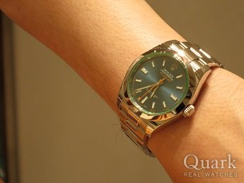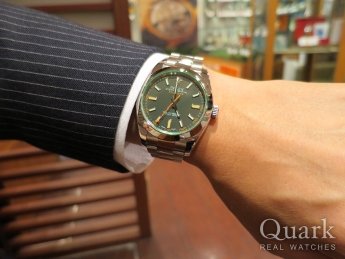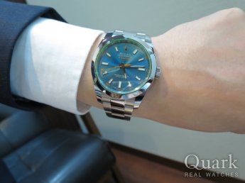 F様 この度はクォーク仙台店をご利用くださいまして誠にありがとうございます。グリーンサファイアクリスタルを通した鮮やかなブルーの文字盤は、光の当たり方で表情が変わります。Zブルーはいまだに流通量が少ないにも関わらず、個性的なモデルとして人気が高い時計でございます。F様をお待たせすることなくご案内できて私自身も嬉しいです。これからはZブルーを眺めながらのビール、さらに美味しくなりますね!F様の日々のモチベーションを上げてくれる間違いない一本だと存じます。末長くご愛用頂けますよう、仙台店はもちろん、横浜店でもブレス洗浄、サイズ調整を無料で承っておりますので、是非ご利用ください。また、スポーツタイプでも気になるモデル、試着だけでもしてみたい等ございましたらお気軽にお申し付けくださいませ。今後とも末長いお付き合いの程、宜しくお願い申し上げます。