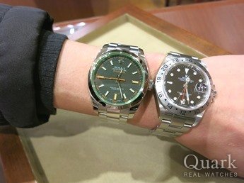 K様 この度はクォーク仙台店をご利用くださいまして誠にありがとうございます。知人の方と被らない個性的なお時計を探されていた中選ばれたミルガウスGVのブラックダイヤルは、ロレックスのカンパニーカラーであるグリーンを用いた風防が、大変目を惹くお時計でございます。お持ちのエクスプローラーIIと併用頂きまして、また新たなロレックスライフを楽しんで頂けたらと思います。周りの方々の反応や、ご使用頂いた感想等をお聞かせ願えればと思いますので、近くにお越しの際は是非ともお立寄りください。今後ともお付き合いの程宜しくお願い致します。クォーク仙台店 濵松