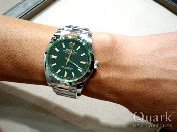 ロレックスを20代から狙っていました。エクスプローラーと迷いましたが、グリーンサファイアクリスタルが珍しく、あまり人とかぶらないので選びました。今日は買うつもりは無かったのですが、実際見て、触ってみると欲しくなったので、購入に踏み切りました。ネットで見て探していましたが、クォークさんは10%OFFの価格でセールをしていたのでタイミングが良く、また価格が上がる前に購入しようと思いました。凄く嬉しいです。