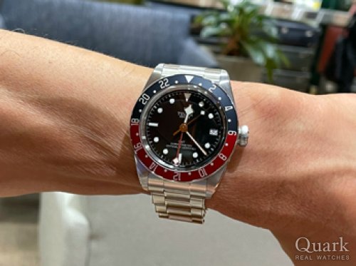 K様 いつもクォーク名古屋店をご利用頂き、誠にありがとう御座います。前回のRef.79030B 青に続き、今回はRef.79830RB-0001 赤青をご購入頂き、ありがとう御座いました。チューダーの中でも人気があるモデルの一つであり、落ち着きのある色味の赤青ベゼルはロレックスとはまた違った魅力があり素敵で御座いますね。またGMT機能や約70時間のパワーリザーブもあり、コストパフォーマンスがとても良い実用時計として最適です。お持ちのコレクションと共にこれからも使い分けを楽しんで頂ければ幸いです。今後も御時計の事でご相談などが御座いましたら、ご遠慮無くお申し付け下さいませ。今後とも末永いお付き合いの程、宜しくお願い致します。