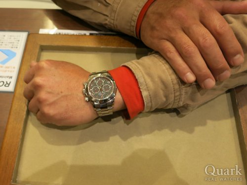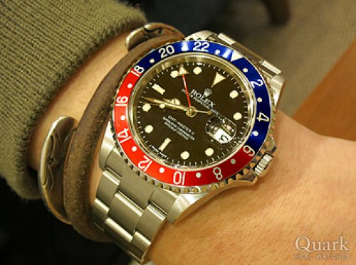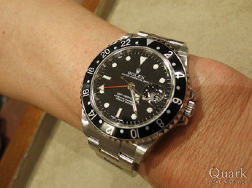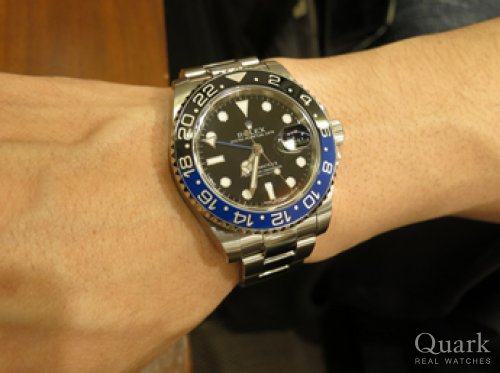 M様 この度はクォーク名古屋店をご利用頂き、誠にありがとう御座います。遂に憧れのロレックスですね。私自身、M様の御購入に携われる事が出来、とても嬉しく感じております。GMTマスターII Ref.16710は、生産終了モデルの中でも特に人気を集めており、中でも赤青ベゼルはお問合せの多いカラーとなります。今回お選び頂いた、スティックダイヤルは希少性高いレアモデルとなる為、タイミング良くご案内をさせて頂く事が出来、良かったと感じております。今後もお使い頂く中で、御相談等が御座いましたら、ご遠慮無く私までお申し付け下さい。栄にお越しの際は、お気軽に遊びにいらして下さい。またM様にお会い出来る日を楽しみにしております。