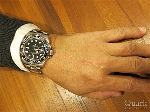 サイズが腕に合い、普段使いが可能で、デザインが洗練されているという理由でGMTを選びました。いかにもロレックスという感じのない雰囲気がとても気に入っています。