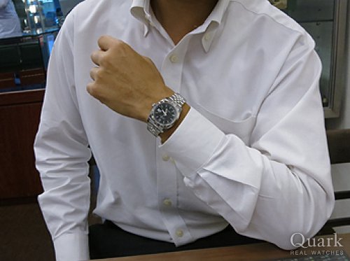 以前よりロレックスではない時計を着けていましたが、4年~5年前からロレックスの時計が欲しくて、雑誌などからモデルを絞って、デイトジャスト(116234 黒バー文字盤)の購入を検討していた。たまたま訪れたクォークさんで、欲しかったモデルが限定特価で販売、これは巡り合わせかと思い、購入を決意しました。