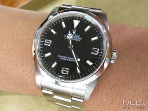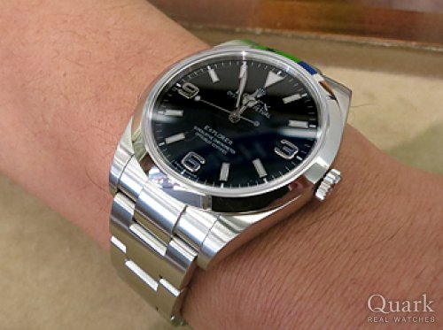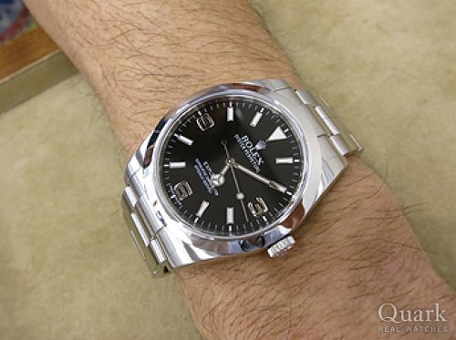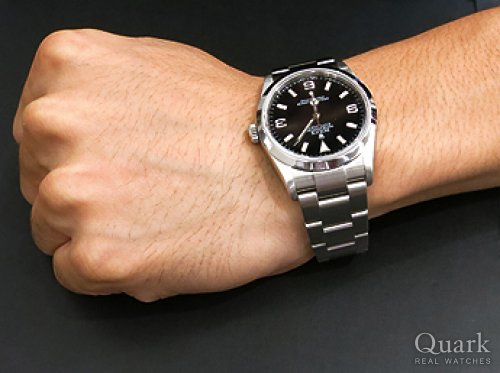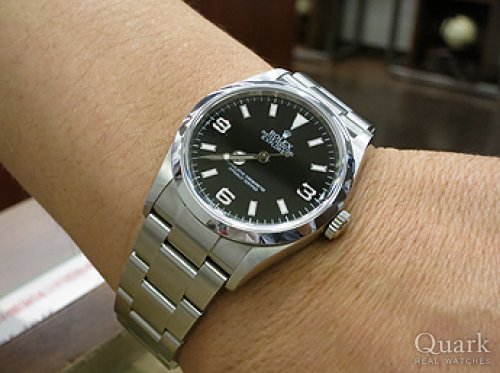 この度はクォーク名古屋店を御利用頂き、誠にありがとう御座います。デイトジャストとも悩まれましたが、エクスプローラーⅠの腕元に馴染みやすい大きさやシンプルなデザインは、どんな場面でも合わせやすい万能なモデルですね。小さ過ぎず、大き過ぎないサイズ感は、今後もご愛用される中でも気にせずお使い頂けると思います。又、年式の新しい非常に綺麗なモデルをご案内する事が出来、本当に良かったです。今後もお使い頂く中で、ご不明な点等が御座いましたら、お気軽にご連絡下さいませ。今後とも末永いお付き合いの程、宜しくお願い致します。