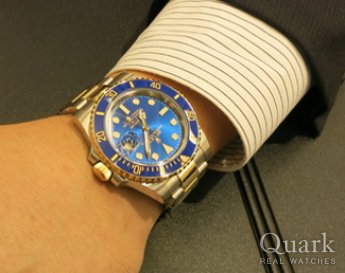 定番の黒いサブマリーナーだと周りと被ってしまうのでこの青サブにしました!綺麗な青の文字盤に高級感のあるコンビ仕様が気に入ってます。