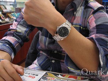 結婚10周年の記念に、10ヶのダイヤが入ったこのモデルを購入しました。また、落ち着いたグレー文字盤がさり気ない高級感を腕元に演出してくれる気がしました。