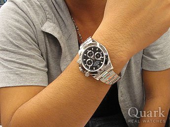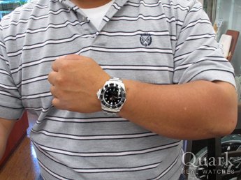 最初は仕事の先輩が旧型サブマリーナを着けていて、それを実際に着けさせてもらい、そこから火がつきました。それで、私も男に磨きをかける為、新型サブマリーナの購入を決めました。実際着けてみたらかっこよすぎました。