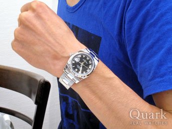 デイトジャスト一目ぼれです!! ローマ数字のオシャレな雰囲気とベゼルのホワイトゴールドの輝きもサイコーです。 ベルト部分も3連にかえてもらってベタぼれです!!