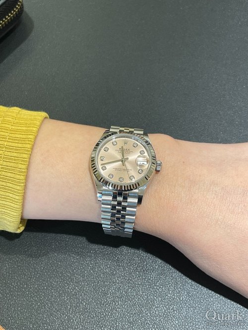 ターコイズのダイヤルに直感で惹かれました。 36㎜のスッキリとしたサイズに鮮やかな文字盤。 非常に満足しています。 クォークさんいつもありがとうございます。