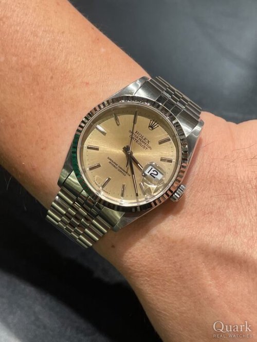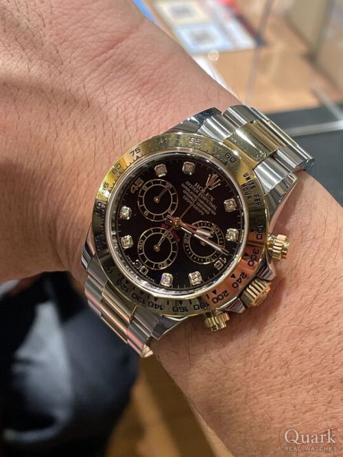 H様 本日はクォークラボ中野店でご購入頂きまして有難うございます。衝動買いに近い感じがしましたが思いっきりの良さ、見習いたいと思います。状態も非常に良い個体ですし、ゴールドがお好きとの事でアクセサリーとの相性も最高ですから末永くお使い頂ければと思います♪ ブレス洗浄も年1回くらいのペースでお持ち込み頂ければ丁度良いと思います。今後ともどうぞ宜しくお願い致します。 クォークラボ中野店 店長:山崎賀津磨