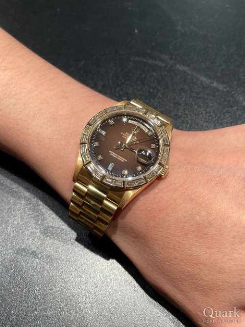 Y様 いつも弊社をご利用下さいまして、誠にありがとうございます。今回のDAY-DATEを初めて見た時のY様のリアクションが忘れられませんでしたので、今回紹介することができたことは私自身もとても嬉しく感じています。一見、派手さを感じるデザインですが、実際に着けて見ると華やかさの中に落ち着きもあり、何とも言えないバランスが魅力ではないでしょうか。とても羨ましい一本です!ご使用いただく上で何かございましたら、いつでもご連絡下さいませ。また次回お会い出来る機会を楽しみにお待ちしています!改めまして、この度もありがとうございました!クォークラボ中野店 佐藤