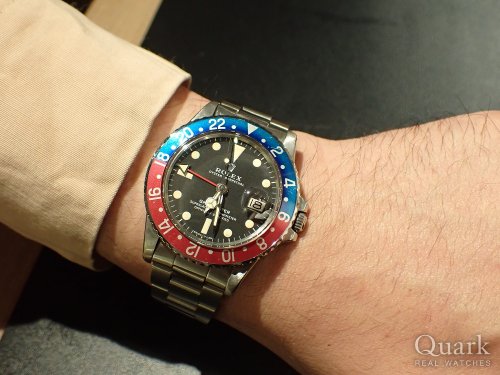 I様 この度はクォークラボ中野店をご利用いただきありがとうございます。今回お求め頂きましたモデル、GMT-マスター(Ref.1675)赤青ベゼルは、ヴィンテージロレックスの中でも、人気の高いモデルでございます。ヴィンテージのエイジングは、雰囲気の同じものがなく、唯一無二の個体になります。今回の個体はその中でも、非常に良い雰囲気の個体でした。I様の腕元にすごくお似合いでした。またI様のバースイヤーのロレックスという事もあり特別な1本になると思います。タイミング良く、I様にご案内出来て嬉しく思います。ありがとうございました。これからのロレックスライフをお楽しみください。また全支店でブレス洗浄サービスもありますので、お近くに来られた際には是非、遊びに来てください。今後とも末永いお付き合いの程、よろしくお願い致します。