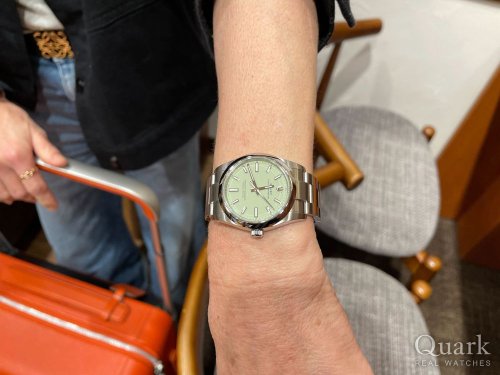 他のサイズのオイスターパーペチュアルは所有していますが、存在感のあるサイズとピスタチオカラーが気に入り購入にいたりました。