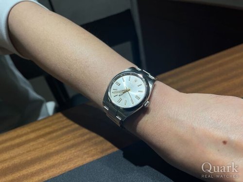 服装にあわせやすいブラックダイヤルを選びました。現行型の126000と一つ前の116000を見比べさせてもらいましたが、116000のほうがメモリの一部が数字だったのでシンプル過ぎないデザインで気に入って、こちらを選択しました。大切に使わせて頂きます。