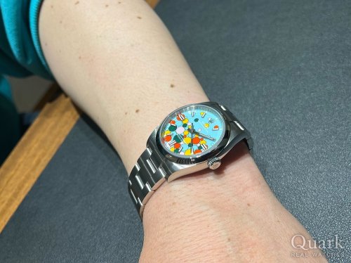 杉野さんいつもありがとうございます。 今回横浜サロンにお邪魔して時計を購入させていただきました。 早いもので、今年でクォーク18年目の節目にオイスター・パーペチュアル126000のラッカーモデル・キャンディピンクを購入することが出来ました。もともとアメリカの雑貨やビンテージのコールマンのキャンプ道具などが好きで、50年代~60年代の時代に車のキャデラックや服などにも多く使われた色がまさしく、キャンディピンクとターコイズブルーでした。文字盤の色の濃さや時計のシンプルなところにもひかれ、年齢を重ねても装着が出来ることから遊び心があり、ネーミングもキャンディピンクなんて最高です。 杉野さん始め、濵松さん、店長の石橋さんやスタッフのみなさんもいつもありがとうございます。 これからもよろしくお願い申し上げます。