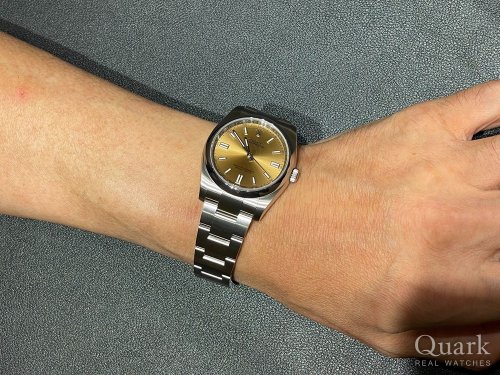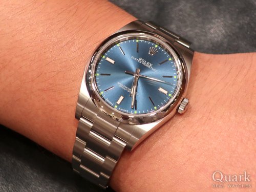 T様 この度は、数ある時計店の中からクォーク梅田店をご利用いただきまして、誠にありがとうございました。今回お求めいただきました「OYSTER PERPETUAL36」は、シンプルなデザインと操作性が大変魅力的となっているモデルでございます。そして上品なブライトブルーダイヤルは、幅広いシーンでご着用でき楽しむことができる魅力的なダイヤルです。是非末永くご愛用いただければと思います。またなにか気になる事がございましたら、お気軽にご相談ください。今後とも末永いお付き合いの程、よろしくお願いいたします。