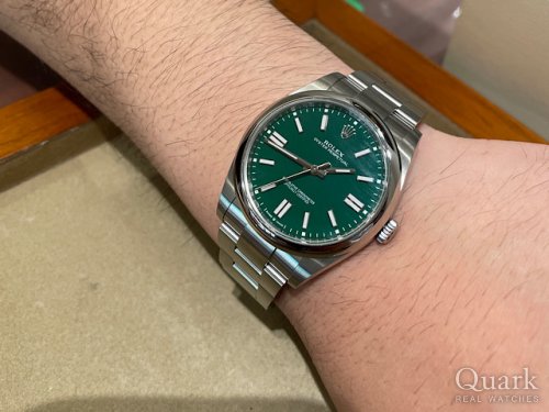 A様 いつもクォーク上野本店をご利用いただき誠にありがとうございます。ご購入いただきましたRef.124300(グリーン)はロレックスのコーポレートカラーであるグリーンの文字盤が独特の雰囲気を醸し出しておりカッコいいですね!2020年に発売が開始された際は入荷と同時に販売となるなどロレックスファンの心をくすぐる人気のモデルとなります。人とは被りづらいモデルとなりますのでA様のこれからのロレックスライフを楽しんでいただけますと幸いです。ブレスレットの洗浄及び調整も無料で行っておりますので、お近くにお越しの際は遊びにいらしてくださいませ。お使いいただく上で何かご不明な点等ございましたら、また林までご相談ください。今後とも末永いお付き合いの程よろしくお願いいたします。