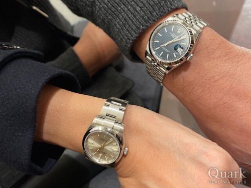 Thank you for purchasing ROLEX in our ueno head shop. OYSTER PERPETUAL 34 Ref.124200 Silver and DATEJUST 36 Ref.126234 bright blue(fluted-motif) are very good models. As gifts, they are also good choices in future and I hope your children will like them. It is really my honor that I could introduce them to you. They are also very fit on you. If you have any problems, please feel free to contact me. I wish you already have had a wonderful time in Japan. And I am looking forward to seeing you next time.