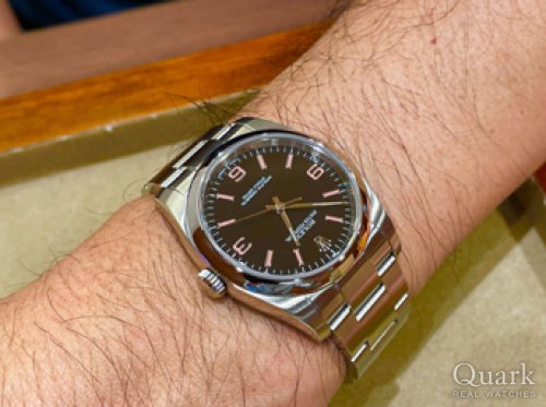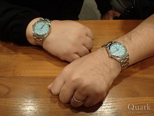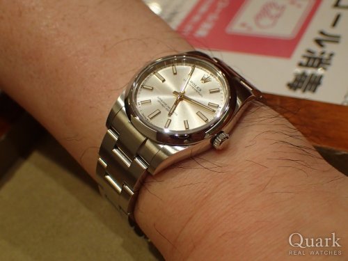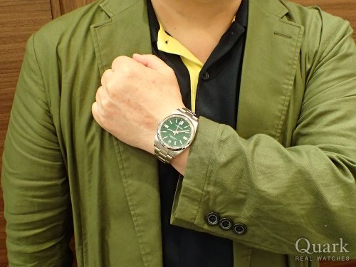 以前にグリーンサブの購入経験もありますが、それとは色味が異なり、手に取った瞬間、このオイスターパーペチュアルのグリーンの色味には心を奪われました!ケースサイズもバッチリで、とても気に入っています。