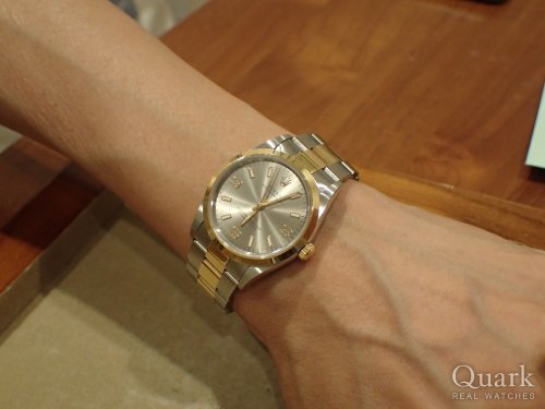 以前にクォークさんでRef.126200 スレートローマ 通称“ウィンブルドン ダイヤル”を購入したが、今回はスーツの袖口に丁度入るサイズの34mm径、Ref.124200を購入しました。スーツを意識した時計なので、シルバーダイヤルで上品な印象のモデルです。次回はプライベート用でRef.126233の新色ダイヤルも視野に入れて次のモデルを検討。
