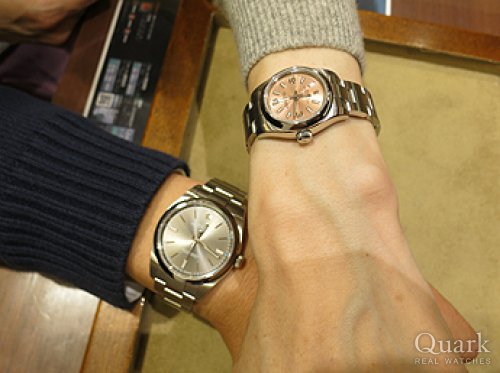 K様 いつもクォーク名古屋店をご利用頂き、誠にありがとう御座います。今回はペアでロレックスをご購入頂き、誠にありがとう御座います。素敵な記念時計のご購入に私も携われる事が出来、嬉しく思います。Ref.114300 ダークロジウムは、角度によって変わる上品さのある色合いにアクセントのある水色がお洒落さを感じられますね。女性モデルは他のモデルとも悩まれましたが、カジュアルで可愛らしさのあるRef.176200 ピンク369は、装い問わず、幅広いシーンでご愛用頂けると思います。これからもロレックスと共に素敵な時間を過ごして頂ければ幸いです。今後もご相談などが御座いましたら、御遠慮なく、私までお申し付け下さいませ。また栄にお越しの際は、ブレス洗浄を兼ねて遊びにいらして下さい。今後とも末永いお付き合いの程、宜しくお願い致します。