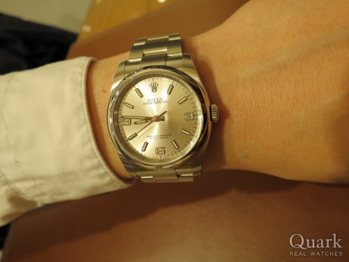 S様、この度はクォーク梅田店をご利用頂きまして誠に有難うございます。今回お選び頂いたオイスターパーペチュアル Ref.116000 シルバー369はシンプルで視認性が良く、長く使いたいと考えておられるS様のご意向にとてもマッチするモデルだと思います。運良く当日のご案内をさせて頂く事が出来て本当に良かったです。今後ともS様のお役に立てるよう努めて参りますので、何かご要望等ございましたらお気軽に仰ってくださいませ。またのご来店を心よりお待ちしております。  クォーク梅田店 西村