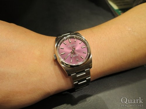 Y様、この度はクォーク梅田店をご利用頂きまして誠に有難うございます。お買い上げ頂きましたオイスターパーぺチュアルは世界中で人気の高いモデルです。Y様のお好きなカラーである鮮やかなブルーを使ったモデルですので末永くご愛用頂ければ幸いでございます。今後もアフターメンテナンス含めしっかりサポートして参りますので、何卒宜しくお願い致します。お近く来られた際は、遊びにいらして下さい。梅田店スタッフ一同、心よりお待ちしております。 クォーク梅田店 羽場