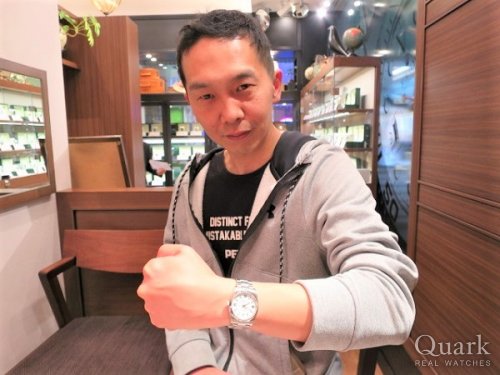 Y様 この度は、当店をご利用頂き誠に有難うございました。シンプルな時計ではありますが、ダイヤルカラーの重厚感やブルーのドットなど細部に拘りを持った時計だと思います。39ミリケースではありますが、そこまで大きさを感じさせない部分がこの時計が醸し出す上品さではないでしょうか。末永くご愛用頂き何かあれば是非ご連絡頂ければと思います。 クォーク銀座888店 店長 日笠山