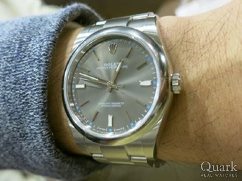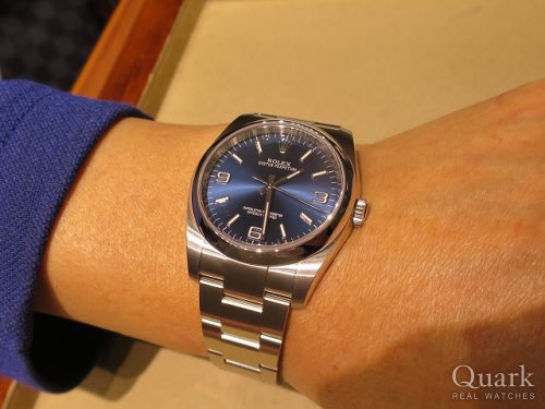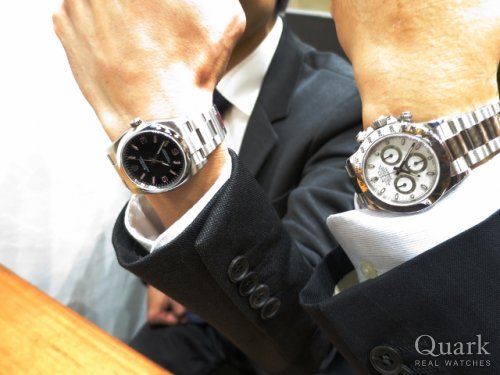 M様 この度はクォーク仙台店をご利用くださいまして誠にありがとうございます。長年悩まれるうちにお好みも変わり選ばれた1本、M様の貴重なお買い物のお手伝いができ大変光栄でございます。頂きましたお写真、ダークロジウムの雰囲気、伝わっておりますか?もはや私の撮影テクニックに問題があるのではないかと不安になっておりますが・・・(笑)。M様のお話しをお伺いしておりますと、私も勉強になります。全体のシックなイメージに遊び心感じるドットの色合い、さりげなくオシャレな感じがまたカッコイイですね~。奥様とのご旅行にも是非ロレックスを連れて行ってくださいね。いつまでもM様のお気に入りの1本となりますよう、今後もしっかり対応させて頂きますので、ご不明点などございましたらお気軽にお申し付けくださいませ。店頭にてブレス洗浄、サイズ調整を無料で承っておりますので、仙台にお越しの際はお店にも遊びに来てください。それまで仙台泉の情報も勉強しておきます(笑)!!それでは今後とも末永いお付き合いの程宜しくお願い申し上げます。