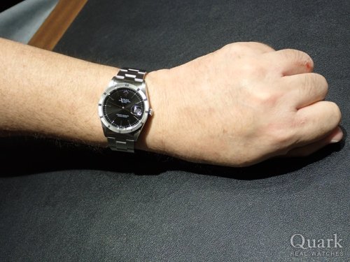 F様 この度は数ある時計店の中からクォーク上野本店をご利用いただき誠にありがとうございます。シンプルなデザインは着用する場面を選ばず、メンズサイズとしてはやや小振りな34mmのケース径で幅広い年齢層からも支持を受けております。ロレックス入門用のモデルとしても紹介される事が多い人気の商品の為、タイミング良くご紹介が出来た事、私(林)も嬉しく思います。ブレスレットの洗浄及び調整も無料で行っておりますので、お近くにお越しの際は遊びにいらしてくださいませ。お使いいただく上で何かご不明な点等ございましたら、また林までご相談ください。今後とも末永いお付き合いの程よろしくお願いいたします。
