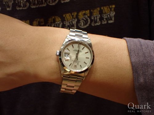 S様、この度はクォーク銀座店をご利用頂きまして誠に有難うございます。そしてファーストロレックスおめでとうございます!さりげなく着用できる34mmの小ぶりなサイズ感がたまらないですね。かわいらしくもあり、クラシカルでシンプルなデザインがとても人気でございます。永くご使用される時計に相応しい一本になると思いますので、今後ともしっかりサポートに努めさせて頂きます。何か気になる事が御座いましたらいつでもご相談下さいませ。