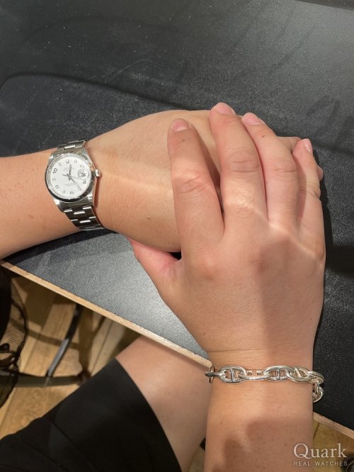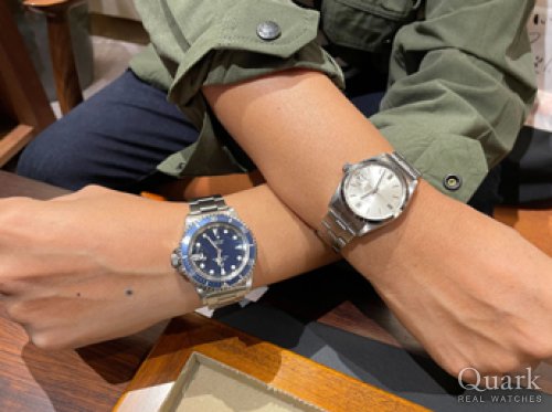 N様 この度は数ある時計店の中からクォーク上野本店をご利用いただき誠にありがとうございます。独特な雰囲気が特徴的のエンジンターンドベゼルを搭載したこちらのモデルは堅牢なオイスターケースに加え、剛健さあるステンレスケースのフォルムがカッコイイですね!見る角度によっても白くも見えるシルバーの文字盤はインデックスとの調和も素晴らしく洗練されておりヴィンテージロレックスの存在感をより放っているのも特徴的です。ブレスレットの洗浄及び調整も無料で行っておりますので、お近くにお越しの際は遊びにいらしてくださいませ。お使いいただく上で何かご不明な点等ございましたら、また林までご相談ください。今後とも末永いお付き合いの程よろしくお願いいたします。