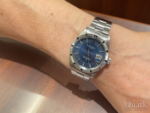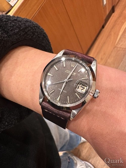 F様 いつもクォーク広島店をご愛顧頂き誠に有難うございます。また、この度はオイスターパーペチュアルデイト(Ref.1500)をお買い求めいただき重ねてお礼申し上げます。お選び頂いたオイスターデイトは珍しいブルーモザイクダイヤル他、ヴィンテージならではの特徴的な仕様が魅力的な個体ですね!まさにヴィンテージ好きのF様にご満足頂ける1本だと感じております。F様が着けると本当に渋くてカッコイイですね!是非、末永くご愛用頂けましたら幸いです。またお使い頂く中でご用命等、御座います際にはお気軽にお申しつけくださいませ。今後ともクォーク広島店を宜しくお願いいたします。