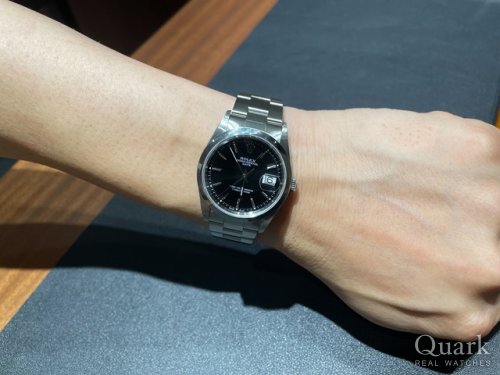 N様 この度はクォーク名古屋駅店をご利用いただき誠にありがとうございます。そして初ROLEXのご購入誠におめでとうございます!ご購入いただきましたOYSTER PERPETUAL DATE Ref.115200は、現在では生産されていない日付付きのモデルでございます。ラグ部分とブレスレット中央部分が鏡面仕上げとなっている為、ROLEXらしい高級感を演出してくれる所がポイントです。34mmのサイズ感は小振りながら腕馴染みが良く、N様にすごくお似合いでした!店頭にてブレスレットの洗浄も行っておりますのでお近くにいらした際は是非お気軽にお立ち寄りください。N様の良きアドバイザーとなれるよう精進して参りますので、今後とも末永いお付き合いの程よろしくお願いいたします。