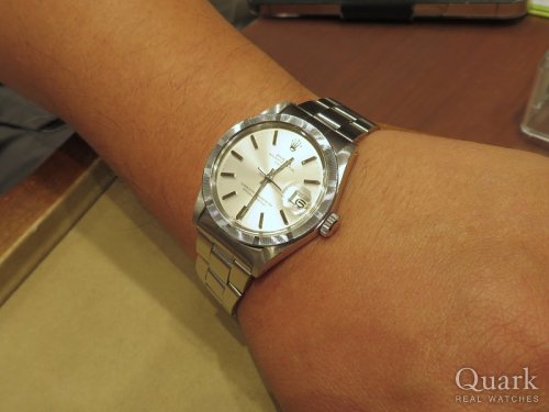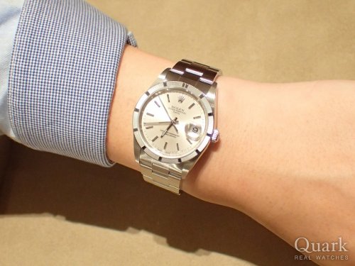 I様 この度は数ある時計店からクォーク上野本店をご利用いただき誠にありがとうございます。I様、初ロレックスおめでとうございます!ご購入いただきましたOYSTER PERPETUAL DATE Ref.15210は1990年から2007年まで生産された人気のモデルでございます。ベゼルには高速で回転するプロペラが残す残像のように細かな線が放射状に刻まれたエンジンターンドベゼルが採用されており、光が当たるとプリズムのような反射をするのが特徴的です。シンプルなデザインは着用する場面を選ばず、ビジネスにもプライベートでも活躍する事間違いなしかと存じます。ブレスレットの洗浄及び調整も無料で行っておりますので、お近くにお越しの際は遊びにいらしてくださいませ。お使いいただく上で何かご不明な点等ございましたら、また林までご相談ください。今後とも末永いお付き合いの程よろしくお願いいたします。