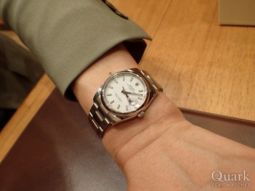 T様 この度は、クォーク神戸店をご利用くださいまして、誠にありがとうございます。今回お選びいただいたOYPP.DATE Ref.115200 ホワイト文字盤は、T様のコメントでも頂きましたように、ベーシックな形状でありながら、現存するロレックスの中ではあまり存在しない組み合わせで、沢山のモデルを所有されているT様にとっても興味深い1本ではないかと存じます。そのシンプルなデザインと小振りなサイズ感で、シーンを問わず着用できるモデルで、普段使いにも最適ですので、お持ちのコレクションとの使い分けをお楽しみください。何よりT様の上品で、爽やかな雰囲気にホワイト文字盤はとても良くお似合いでしたので、末永くご愛用頂けましたら幸いです。知識豊富なT様ですので、私の出番は無いやもしれませんが、ご愛用されていく中で、ご不明な点がございましたら、お気軽にご相談くださいませ。また神戸へお越しの際は、弊店へも遊びにいらしてください。T様のご来店をスタッフ一同心よりお待ち致しております。