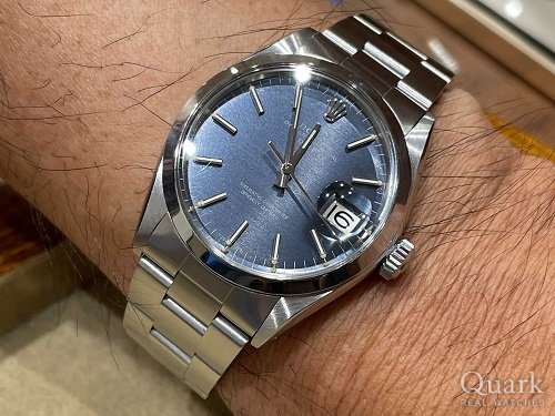 S様、この度はクォーク神戸店をご利用頂きまして誠に有難うございます。お選び頂いたオイスターパーペチュアルデイトRef.1500は、34mmという比較的小振りなサイズ感で重量も軽く使いやすいのが魅力です。1973年製と年代物のお時計ですが、非常に程度が良くまだまだお使い頂けます!渋い雰囲気のグレー文字盤がS様に大変良くお似合いでした、末永くご愛用頂ければ幸いでございます。今後とも、クォーク神戸店を宜しくお願い申し上げます。クォーク神戸店 増田